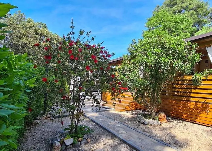 Nestled within 5 minutes' walk of Soline, the self-catering Mobile Home Shelbox provides guests with an aqua park, a sun deck, and a picnic area for a delightful stay. Located within walking distance of St.-Anastasia-Kirche Catholic Church, this villa provides Wi-Fi and parking.